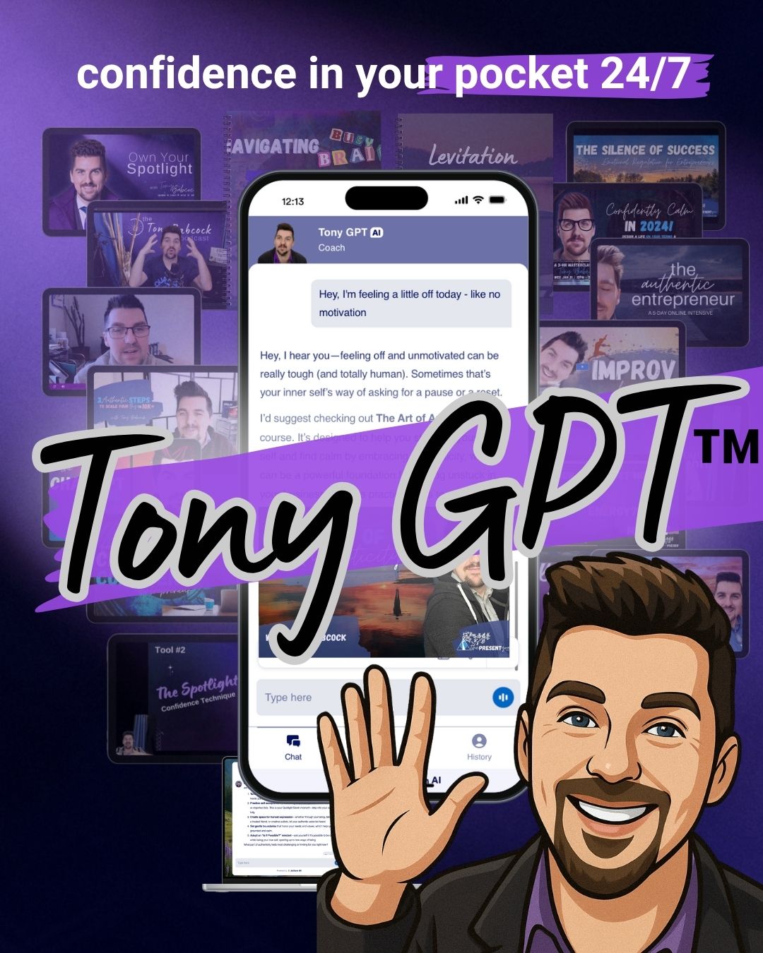TonyGPT is your on-demand mindset coach, strategy mentor, and improv-inspired problem-solving partner — available 24/7.